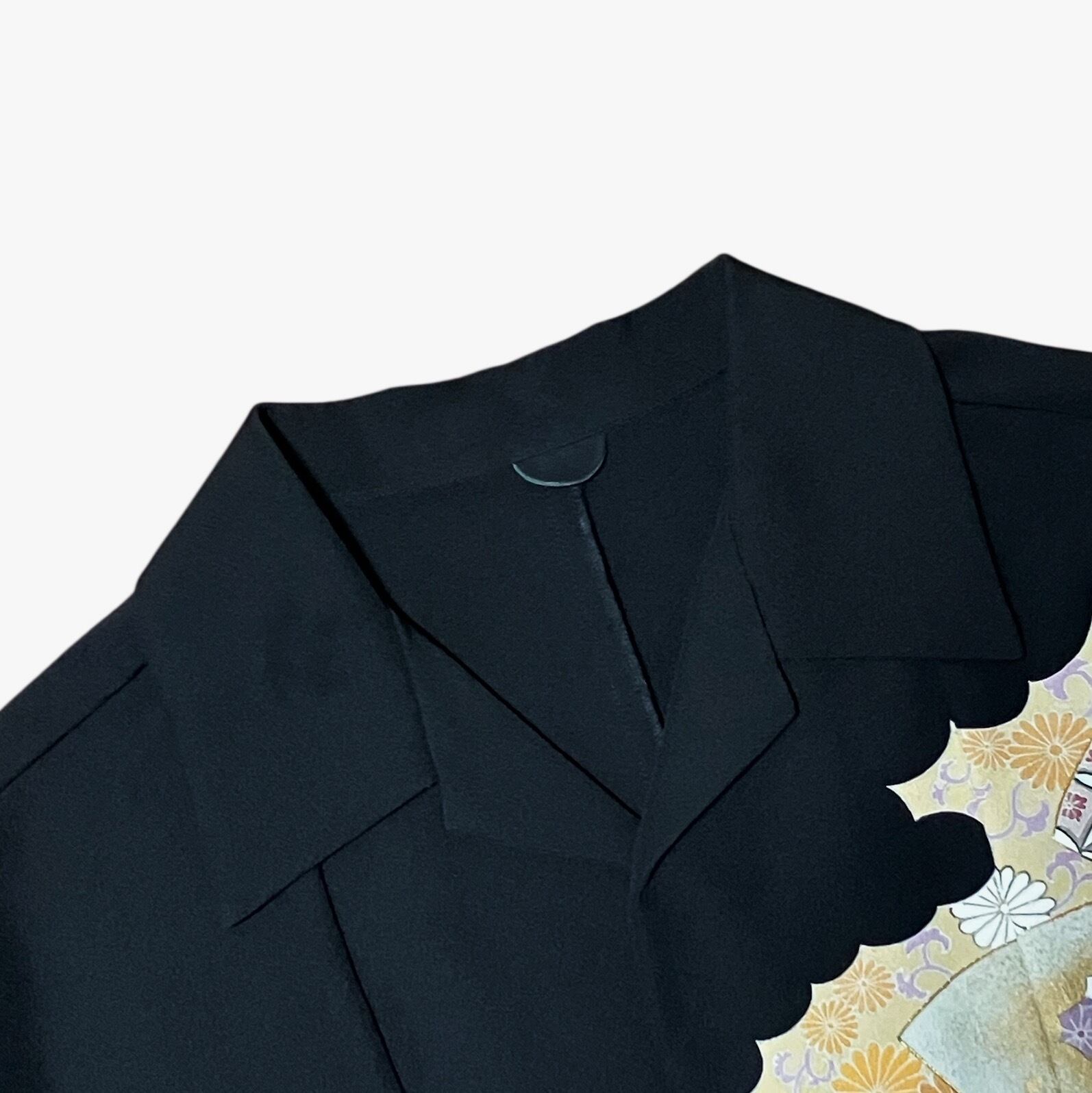 着物の絵柄を引き立たせるため、ボタンやポケットは取り付けておりません。また着物の雰囲気をそのままに、極力ステッチが表に出ない縫製を行なっております。